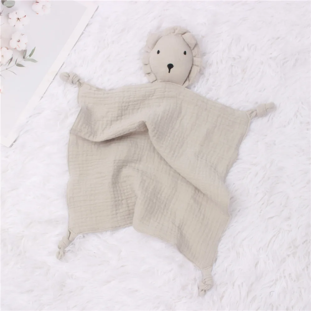 Детские спальные куклы для новорожденных, детская игрушка для сна, успокаивающее полотенце, нагрудник для кормления льва, 100% хлопок, муслиновый детский нагрудникРазмер: 30x30 см