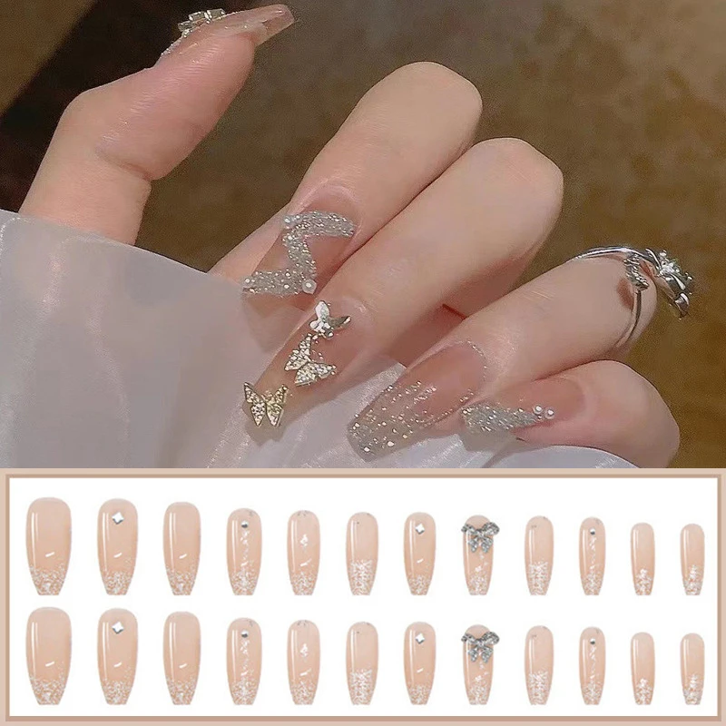 24 шт.корт. Разы в виде бабочки для ногтевого дизайна носимые съемные накладные ногти с клеем супер блестящие модные Готовые Ногти