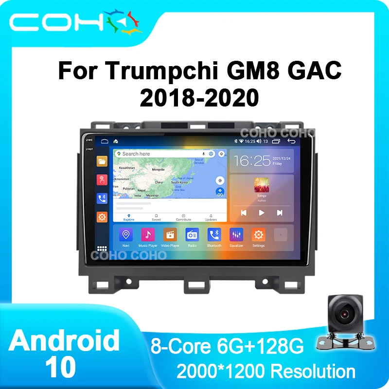 COHO для Trumpchi GM8 GAC 2018-2020 Android 10 QLED 2000*1200 автомобильная навигация Восьмиядерный 8G + 256G GPS аудио Радио мультимедийный плеер