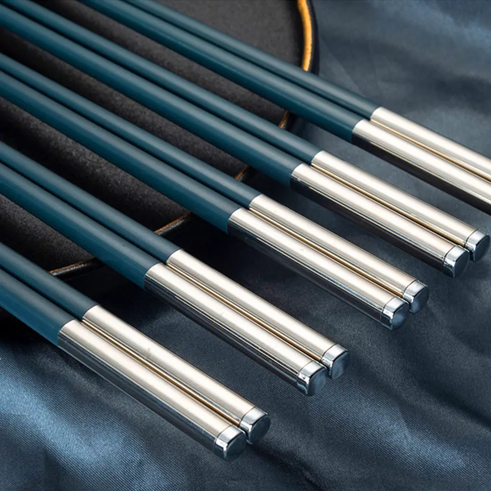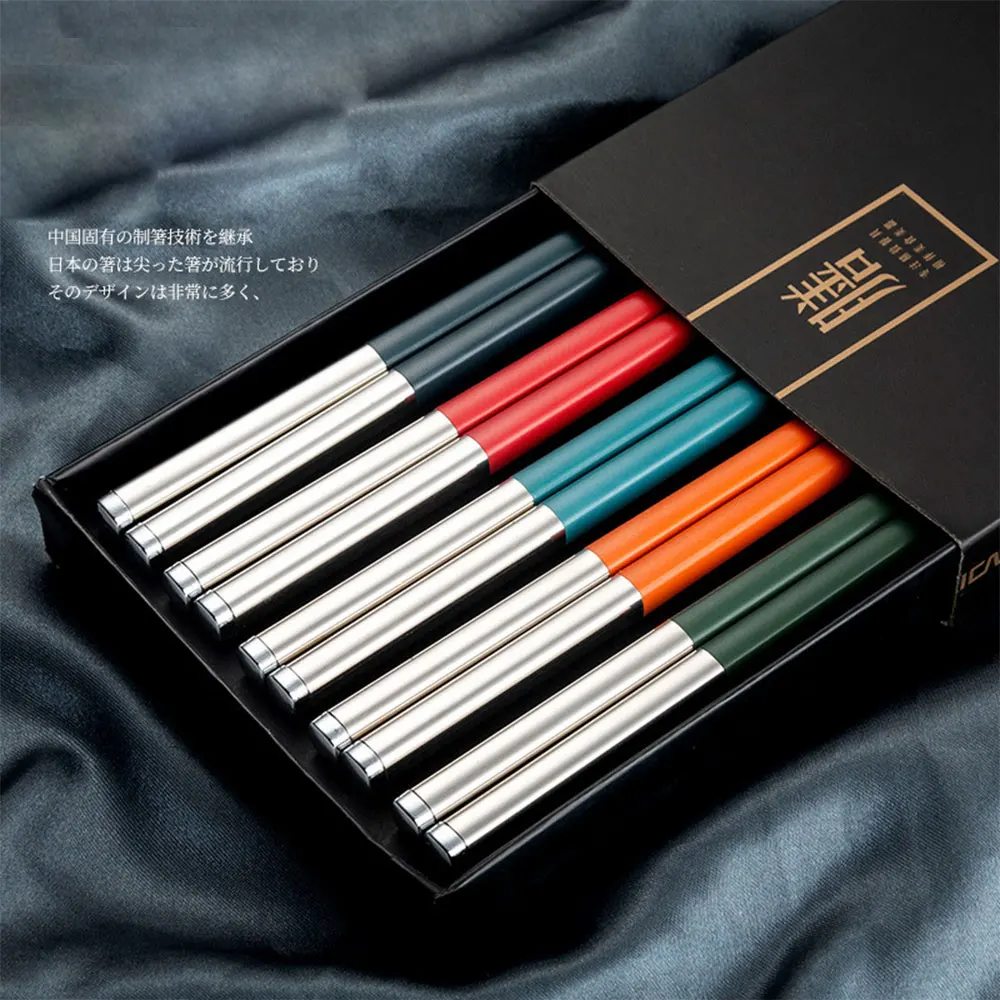 Палочки для суши в китайском, японском и корейском стиле, Нескользящие палочки из сплава, аксессуары для столовой посуды, 5 пар