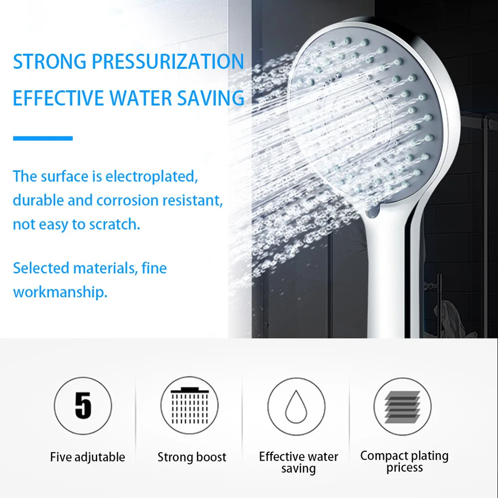 Лейка для душа с хромированной поверхностью, 5 режимов, ручной распылитель