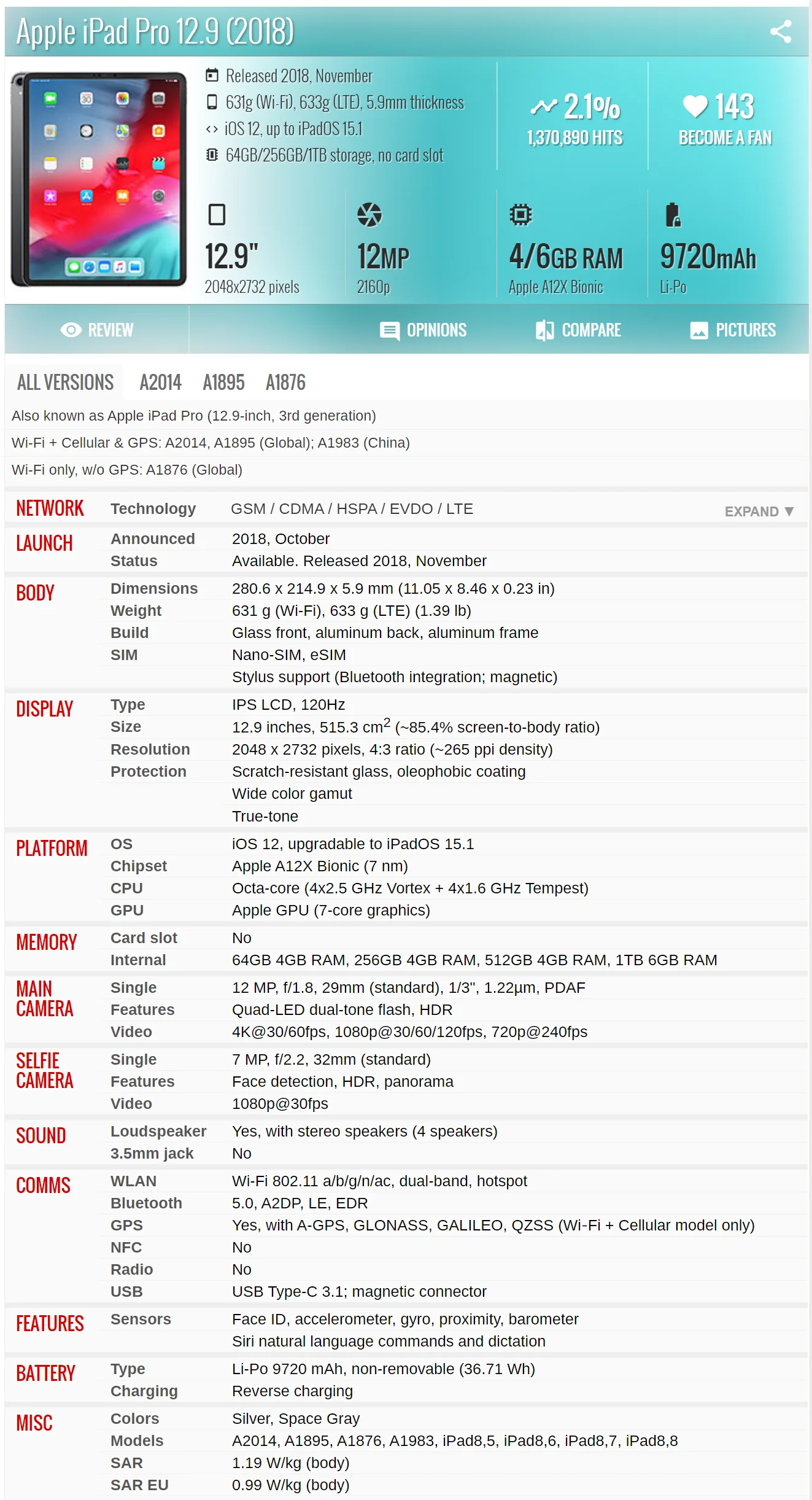Оригинальный обновленный Ipad Pro 2018 12,9 WiFi версия 2018 Apple 12.9-дюймовый IPad Pro 3th поколение A1876