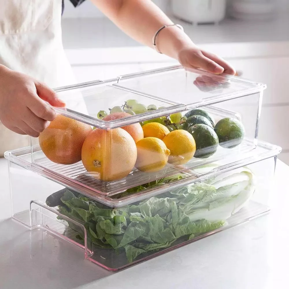 Органайзер для холодильника Bins с ручкой, корзина для хранения еды, прозрачные коробки для овощей, закусок, фотоинструмент