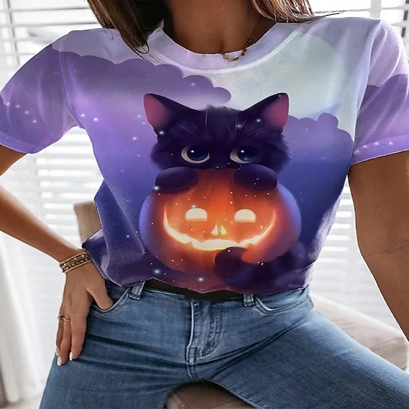 Новинка, женская летняя свободная повседневная одежда с 3d-цветочным принтом и круглым вырезом, художественные футболки