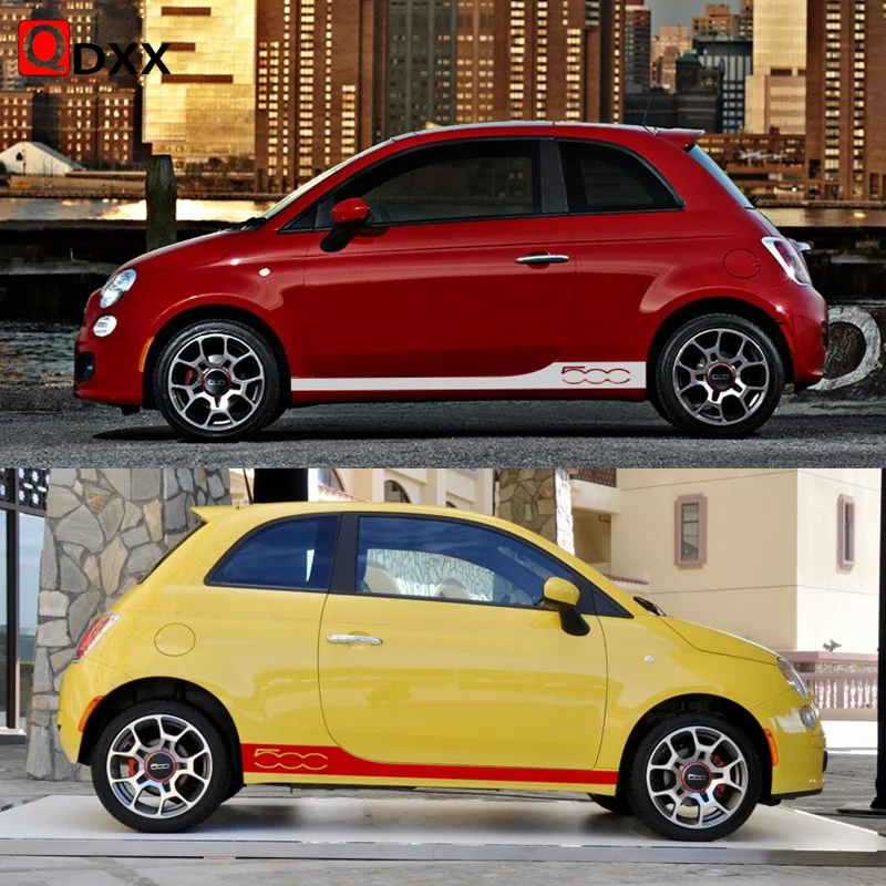 Наклейки на автомобильные двери и боковые полосы, юбка, наклейки, наклейки для Fiat 500, Abarth 595, 695, 500C, 500e, внешние аксессуары, 2 шт.