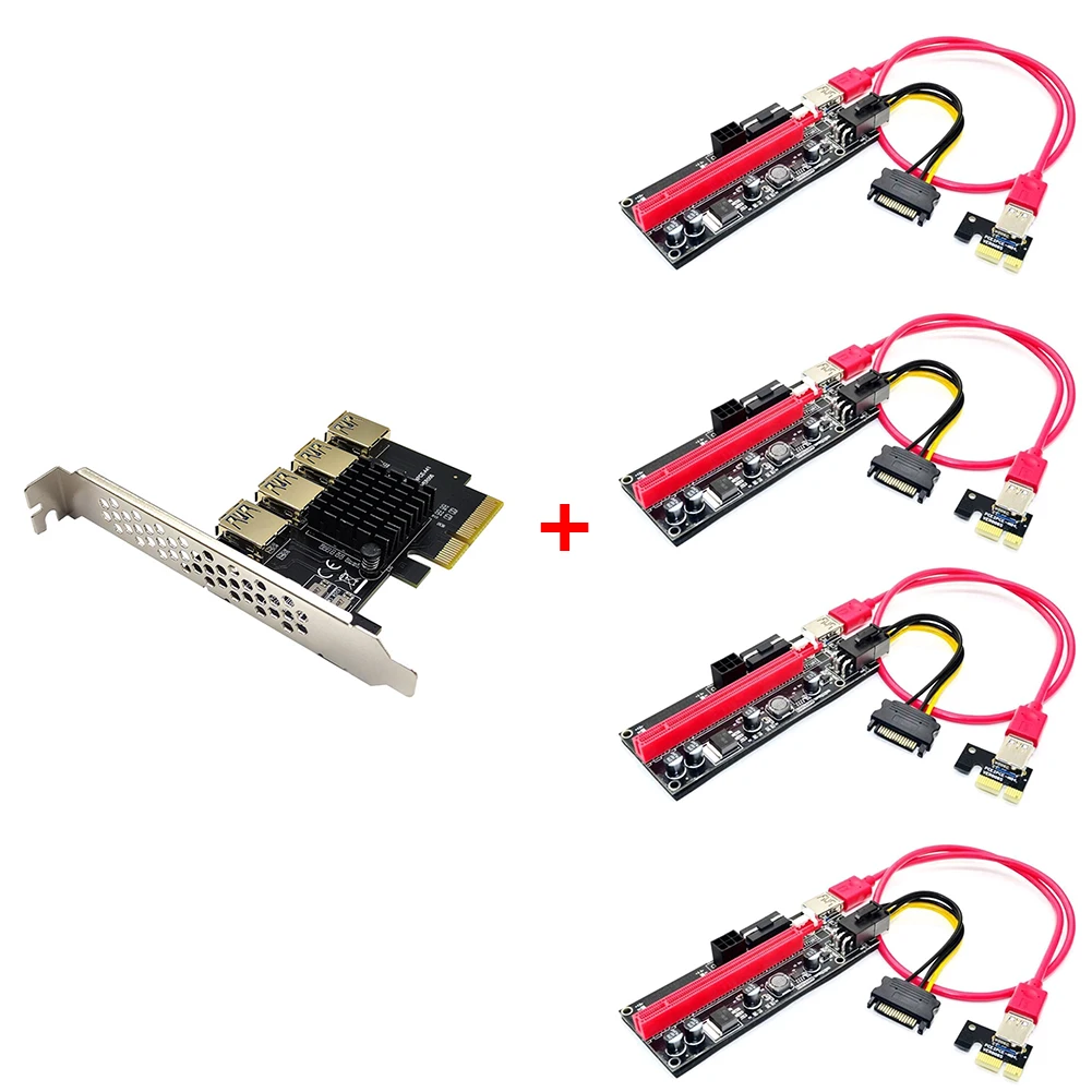 PCI-E X4 1-4 Расширительная карта + 4xPCI Express 16X Riser + 4xPCI-E 1X адаптер + удлинитель 4 PCIE USB порт мультипликатор настольный компьютер удлинитель