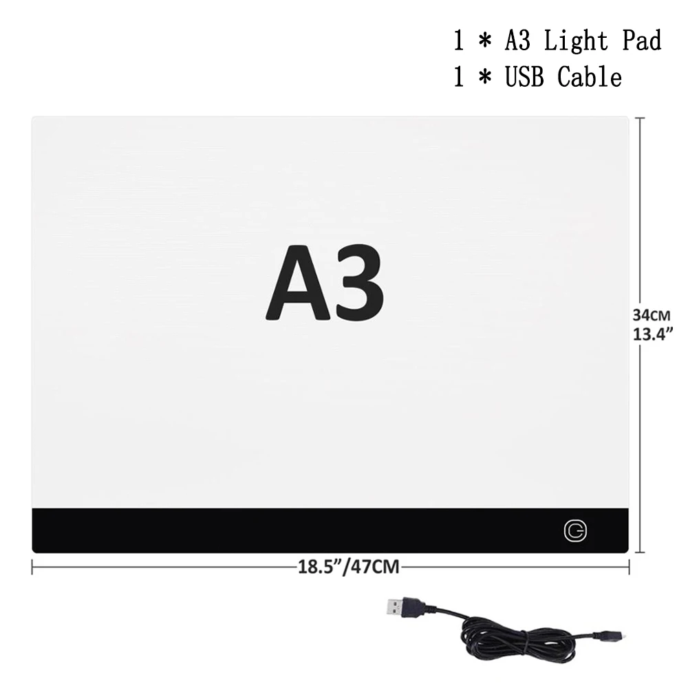 Планшет для рисования со светодиодной подсветкой, A5A4 A3, 5d, 3 уровня яркости, с питанием от USB