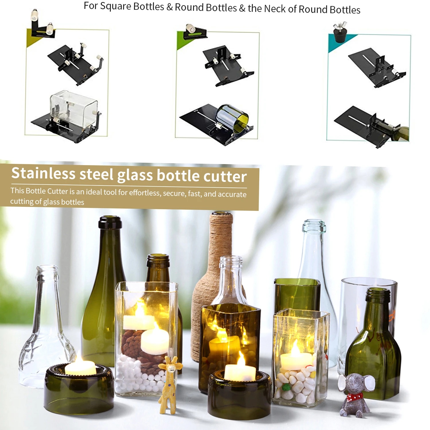 Резак для стеклянных бутылок, квадратныйкруглый резак для скульптур вина, пива, стекла, резак для самостоятельной резки стекла, металлический держатель для бутылок
