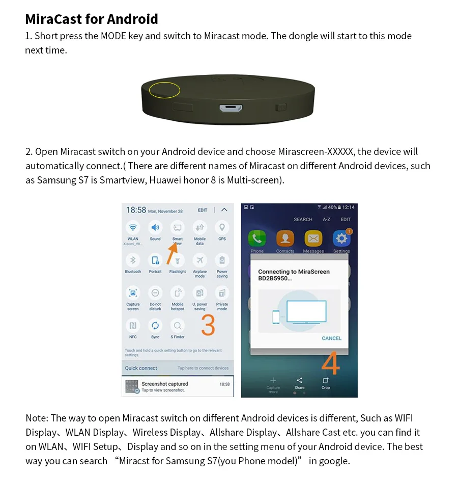 Совместимые устройства. Беспроводной адаптер HDMI display, совместимый с устройствами Android 4,2 +, iOS 8,0 +, MacOS 10,0 + и Windows 8,1 +.