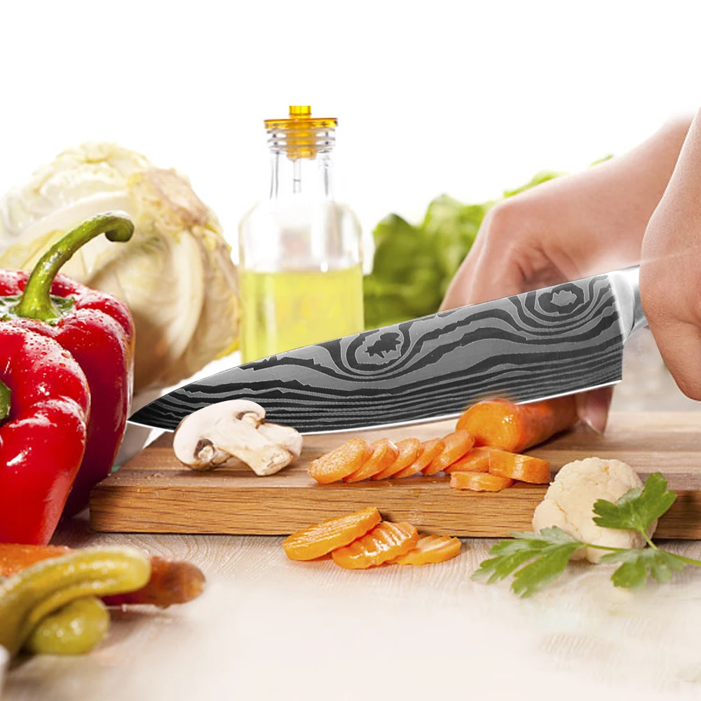 Профессиональный набор ножей шеф-повара, дамасский лазер для нарезки мяса, нарезки овощей, резак, Мясницкий кухонный нож из нержавеющей стали