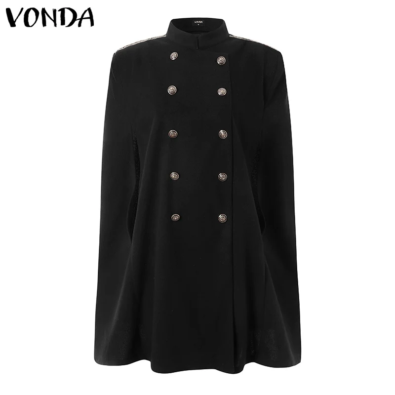 Накидка VONDA женская с воротником-хомутом, элегантный двубортный плащ-пончо на пуговицах, винтажная верхняя одежда в стиле оверсайз
