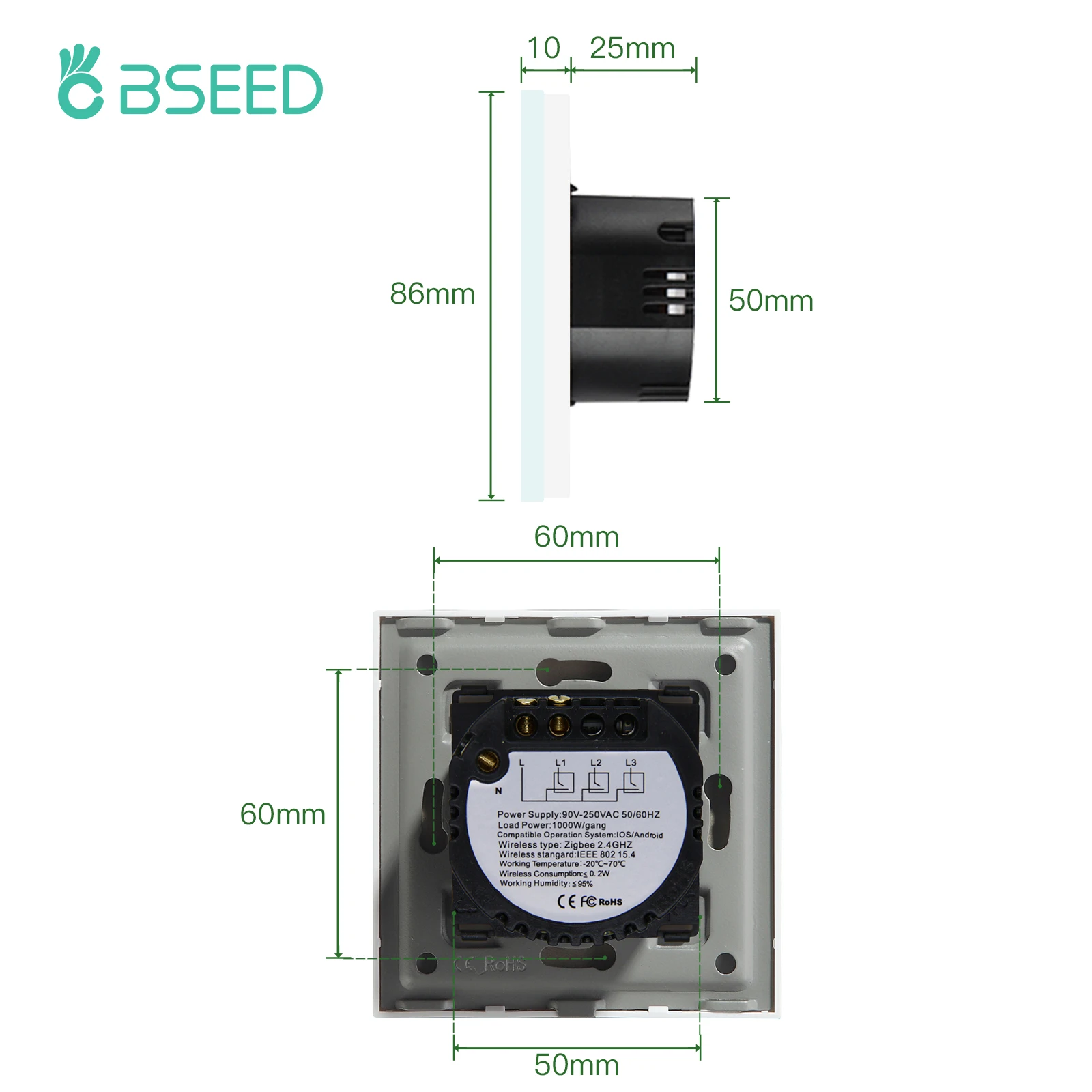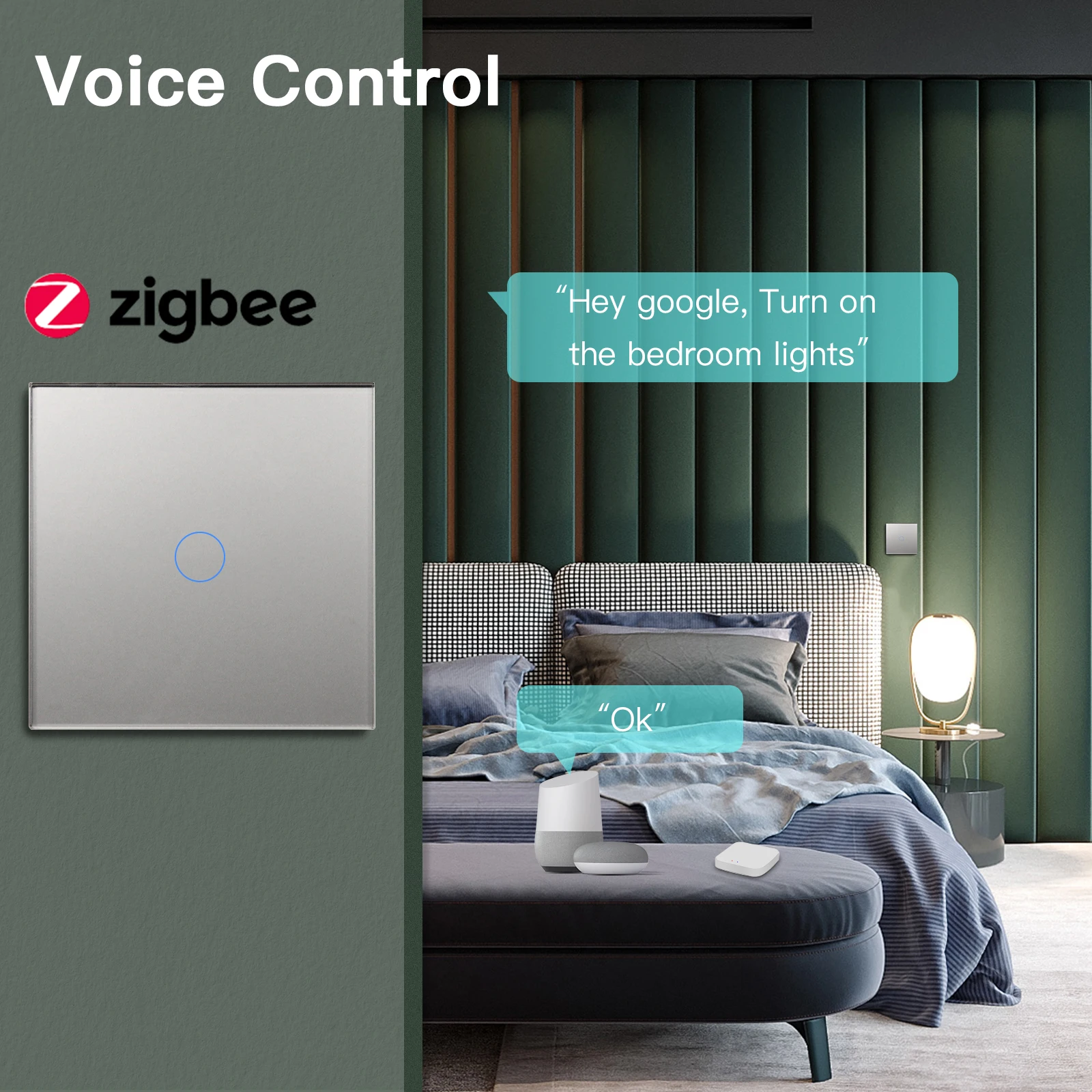 BSEED ZigBee умный сенсорный выключатель, 1 банда, 2Way настенный светильник, переключатели, стандарт ЕС, поддержка Smart Life, Google Home, Alexa, голосовое управление