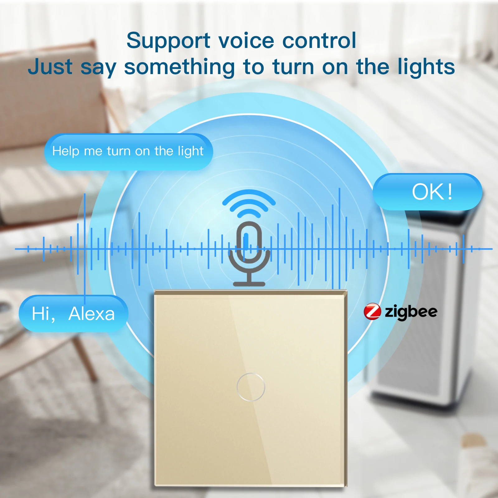 Умные светильник ели света BSEED Zigbee, 1 клавиша, 2 канала, сенсорный настенный переключатель для лестниц, Google Home, приложение Smart Life, Alexa, голосовое управление, 220 В