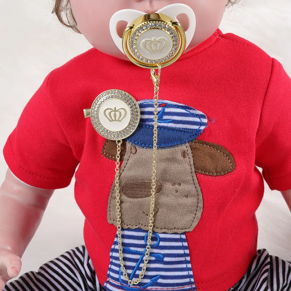 Золотая Соска-пустышка с зажимами, роскошная Соска-пустышка с алфавитом для младенцев, уникальная Соска-пустышка с буквами, подарок для малыша