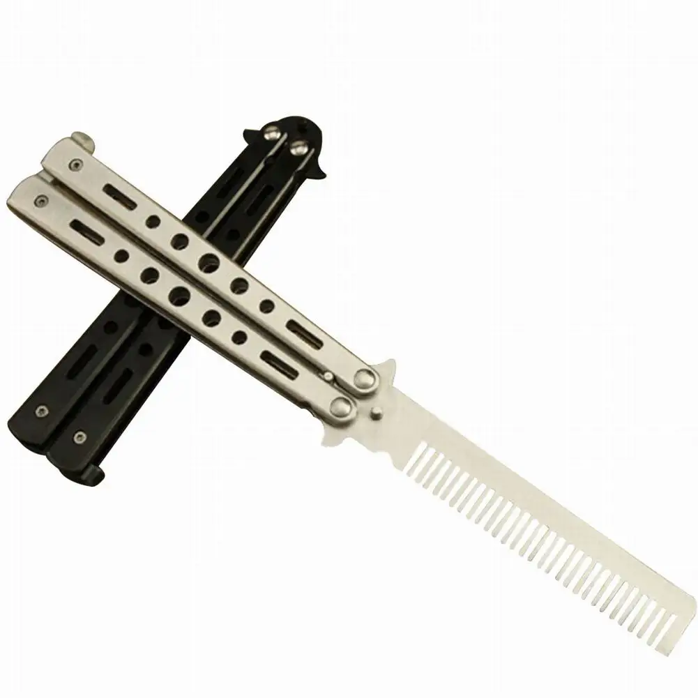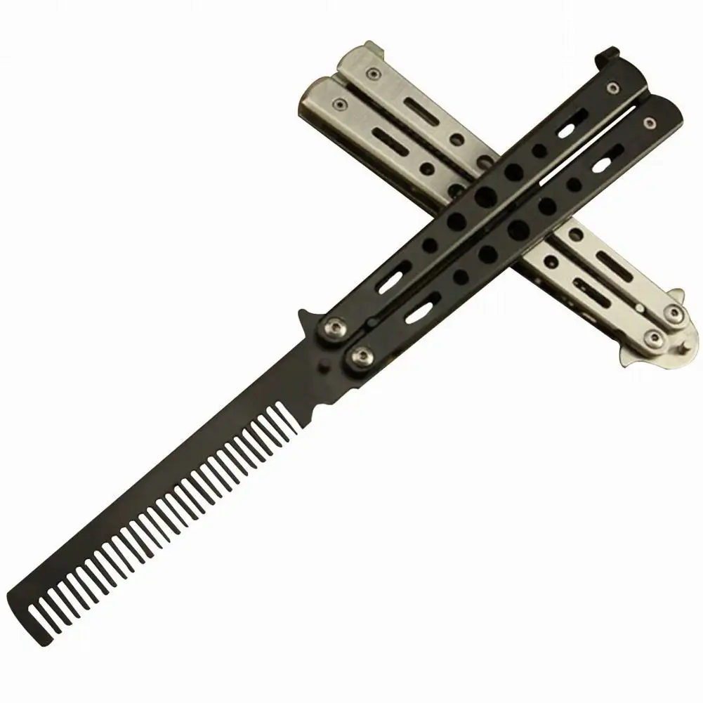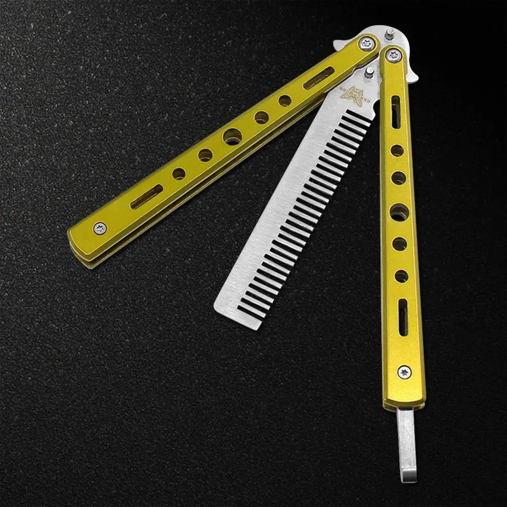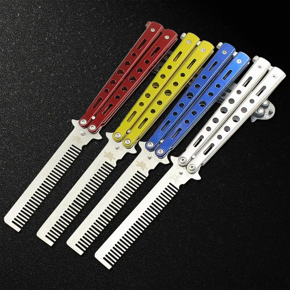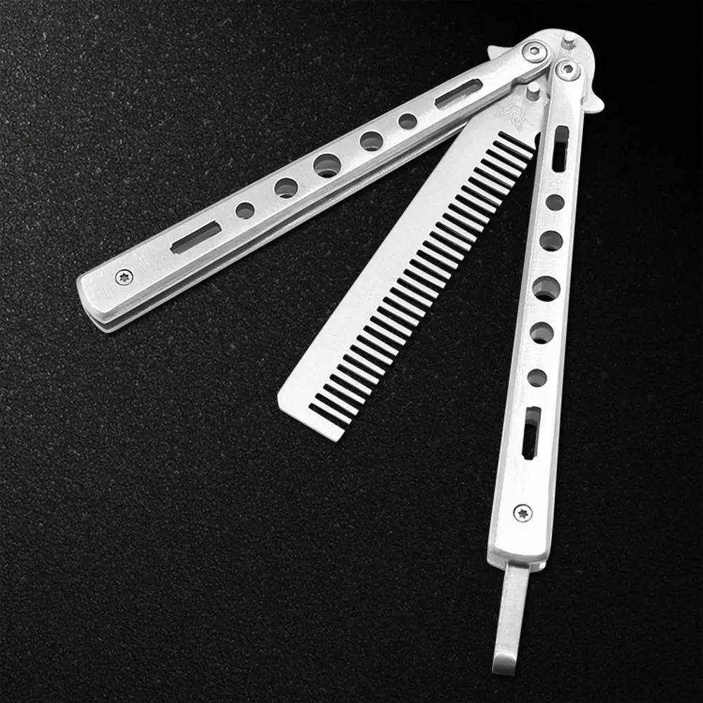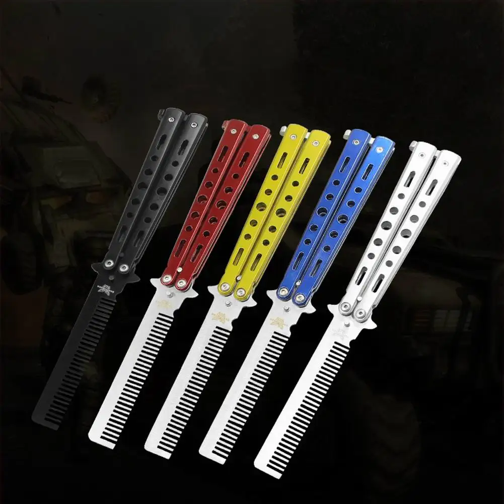 Стальной тренировочный нож-бабочка, безопасная расческа, складной тренировочный гребень, Стильная машинка для стрижки, парикмахерская расческа для начинающих