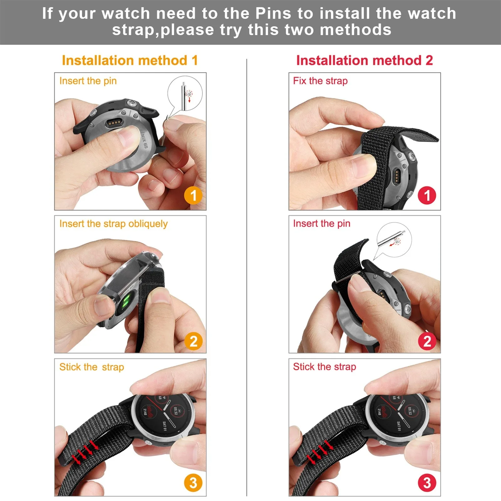LИспользуйте ремешок так же просто, удалите свой текущий ремешок, вставьте его в часы с наконечниками вашего GarminFenix 6S/5S. Наконец, прикрепите к запястью.