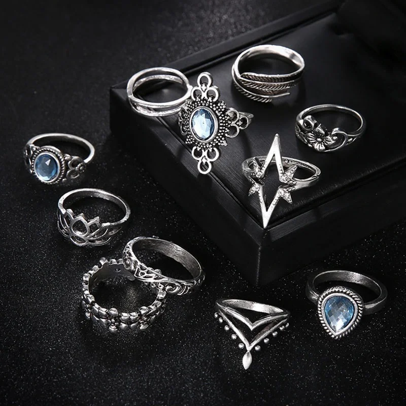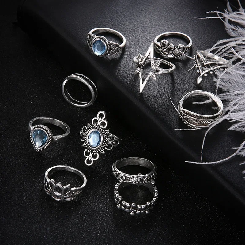 11 шт.компл. ретро набор колец на палец в стиле бохо Корона Звезда серебряные резные кольца на костяшки для женщин ювелирные изделия подарки