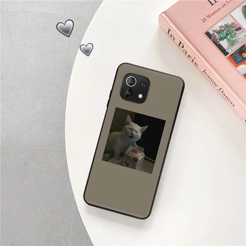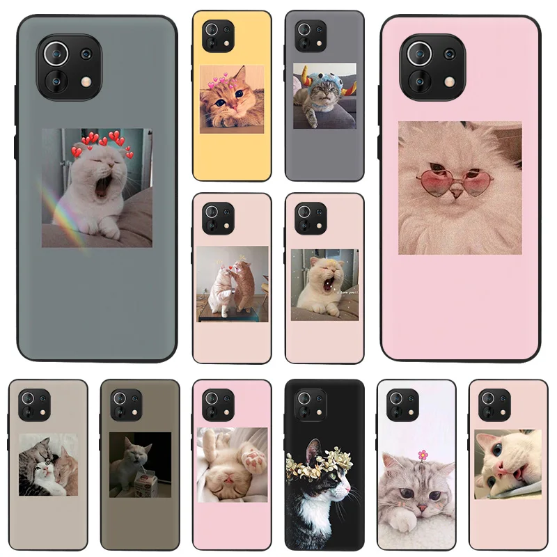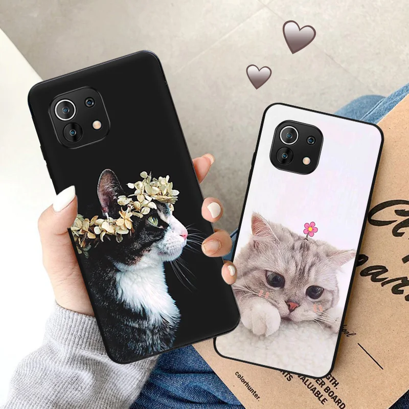 Мягкий чехол для телефона Xiaomi Mi 11 Ultra 11T 10T Lite Note 10 5G 11i 9 11X Pro 9SE, роскошный черный матовый силиконовый чехол с милым розовым котом