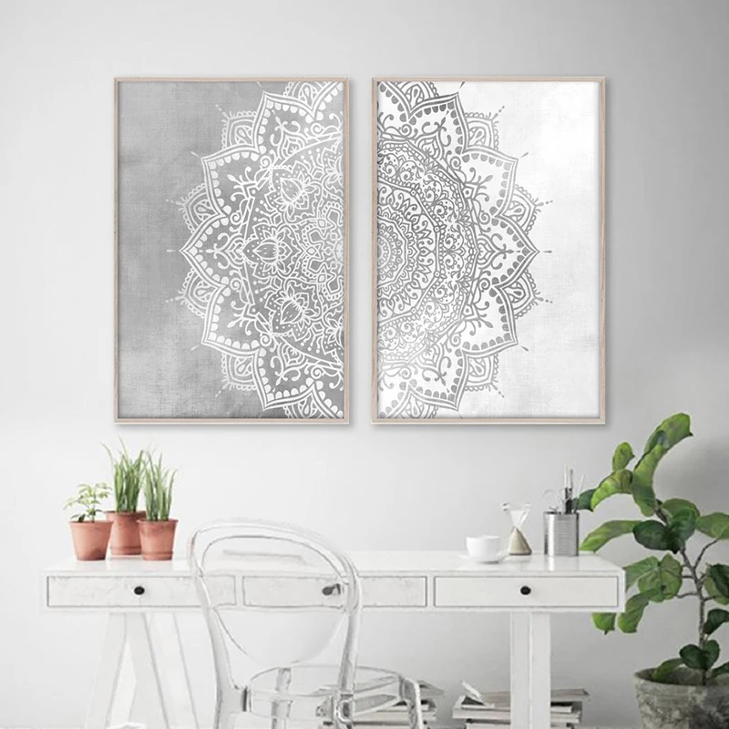 Картина на холсте с градиентом, розовая, синяя, серая мандала, Постер в стиле бохо, рисунок на стену, декоративные картины для домашнего декора