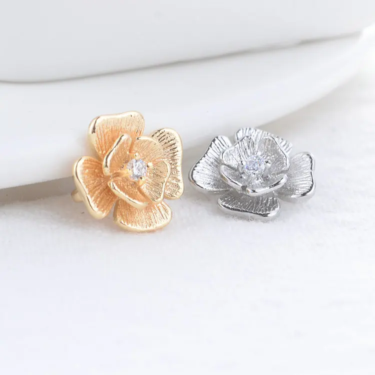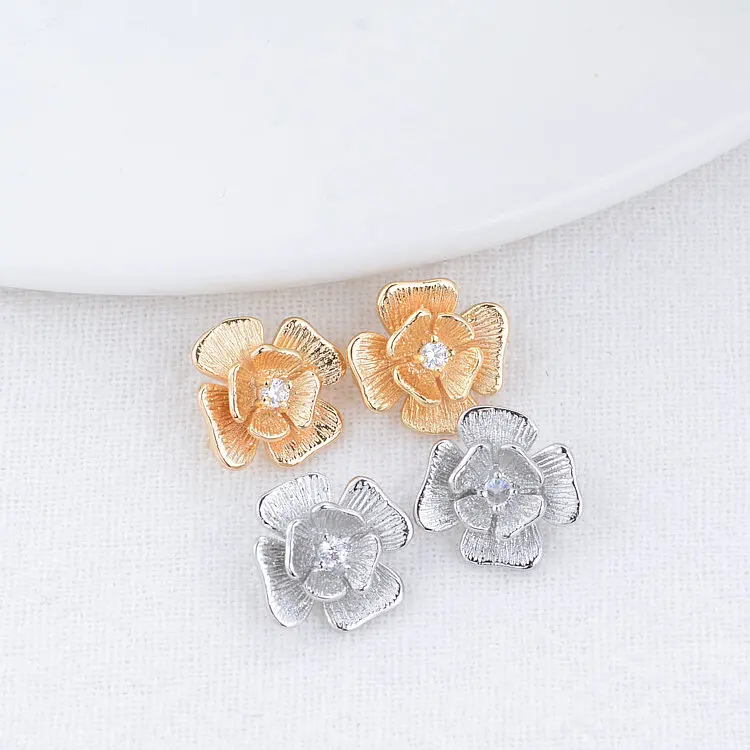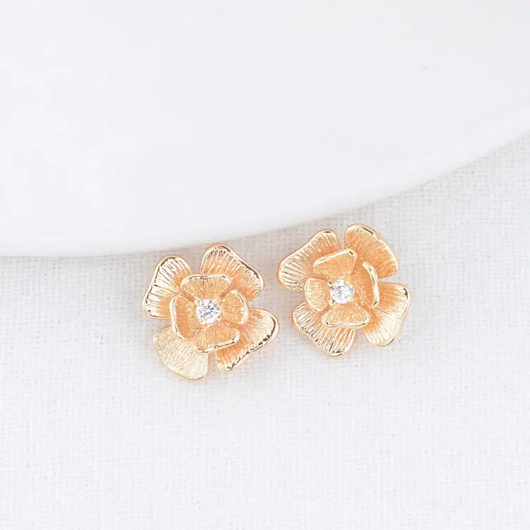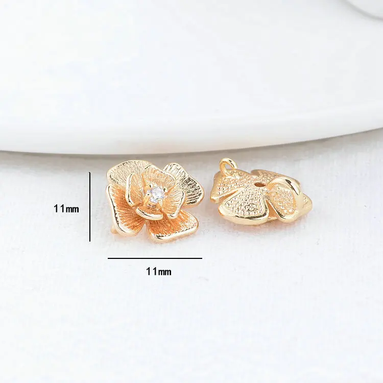 6 шт., позолоченные подвески с фианитами, 11 х11 мм