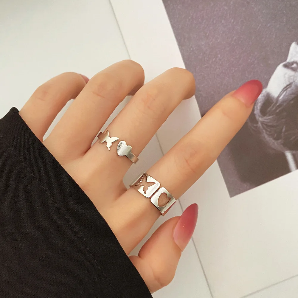Латы сердце бабочка кольца для мужчин и женщин пара колец для влюбленных набор дружбы обручальное Обручальное Открытое кольцо 2022 тренд ювелирные изделия