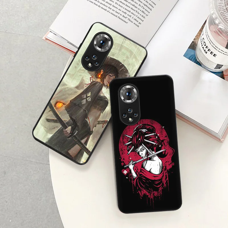 Японский самурайский Мягкий ТПУ силиконовый черный чехол для телефона Huawei Honor 50 20 Pro 30 8X 9X Lite 8S 9S 9C 20e 20s 30i Play 9A чехол
