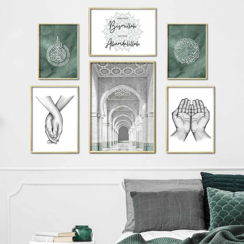 Мусульманский современный плакат настенная Картина на холсте Марокканская мечеть здание Цитата ручная картина и печать для декора спальни
