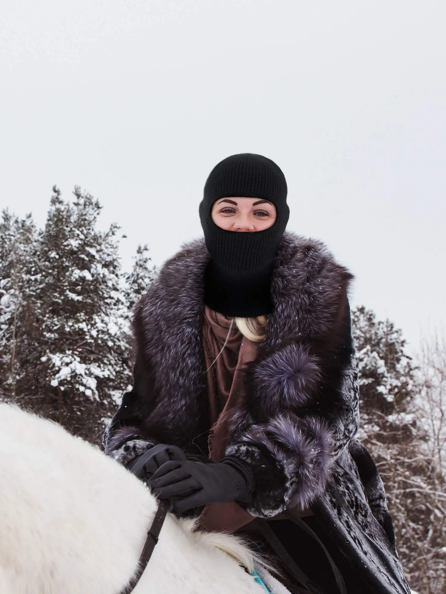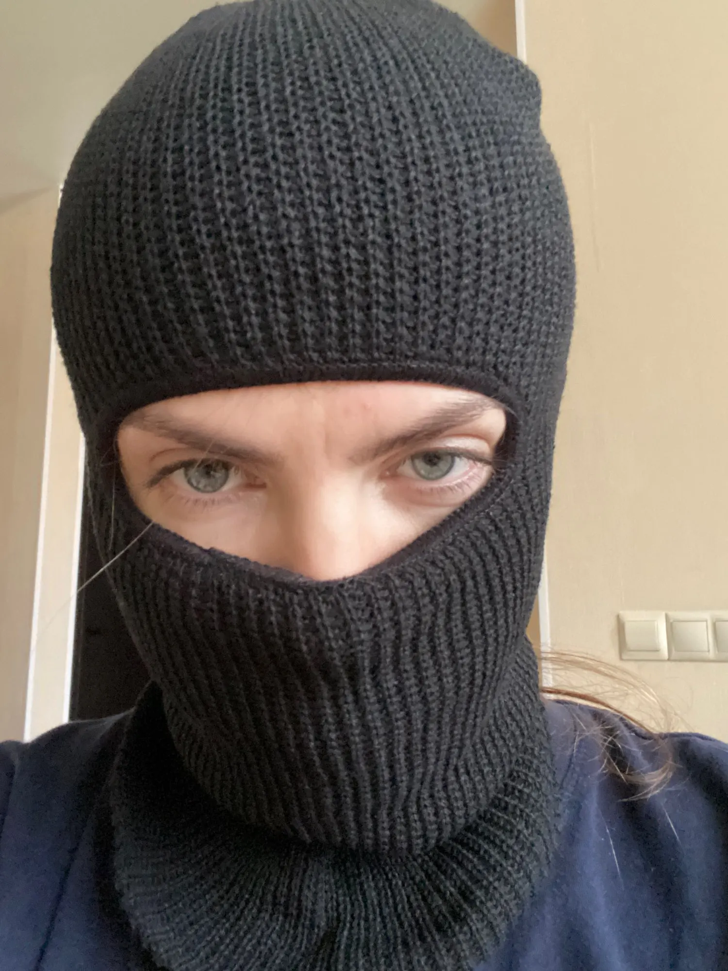 Тоньше, чем я ожидала. Будет видно только глаза. Модели из масс маркет дают возможность открыть и лицо. Но для прогулок в ветер будет ок