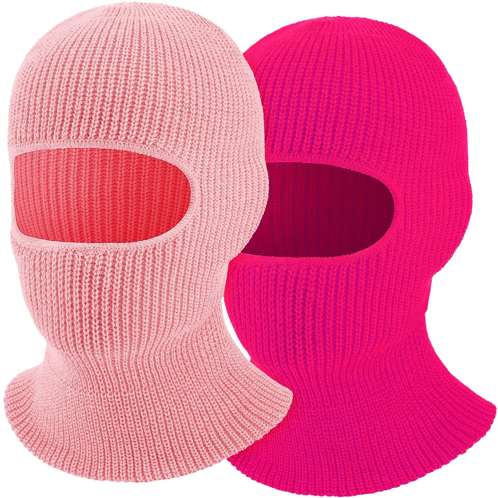 Зимняя Лыжная теплая шапка, Балаклава, шапка для мужчин и женщин, вязаная шапка на все лицо, неоновые цветные тактические шапки-бини с одним отверстием, забавные шапки