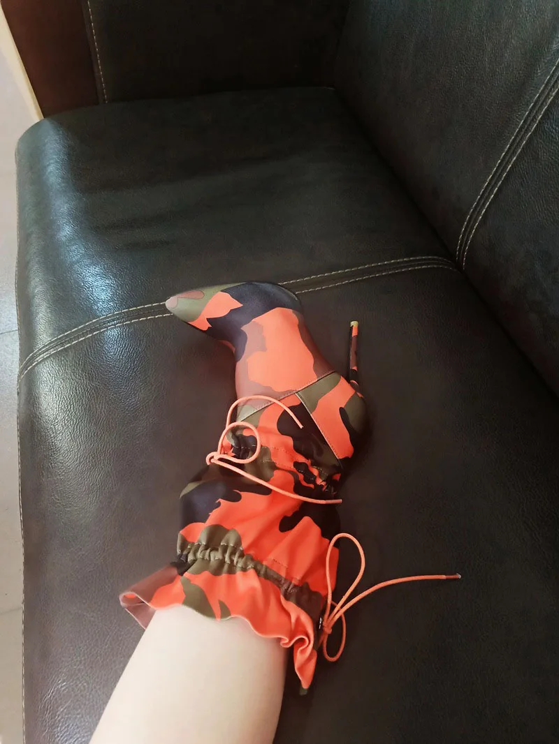 Ботинки женские на высоком тонком каблуке 11 см, модные камуфляжные...