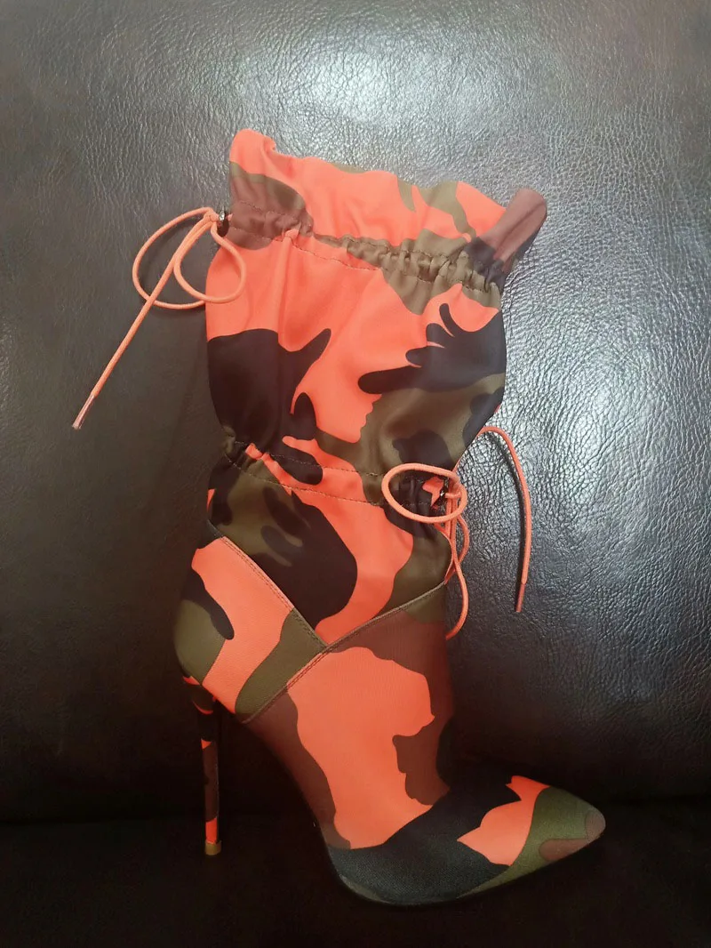 Женские камуфляжные Ботинки на каблуке-шпильке, с острым носком