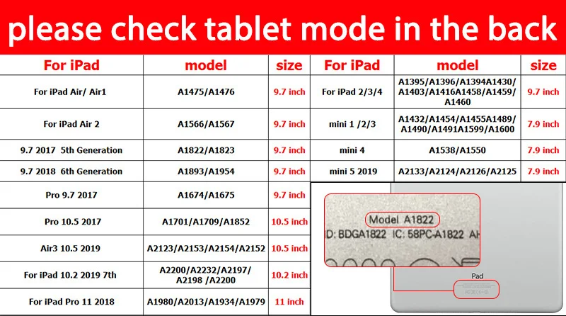 Модельная совместимостьfor Apple iPad Air 1 Air 2 New iPad 9.7 2017 2018