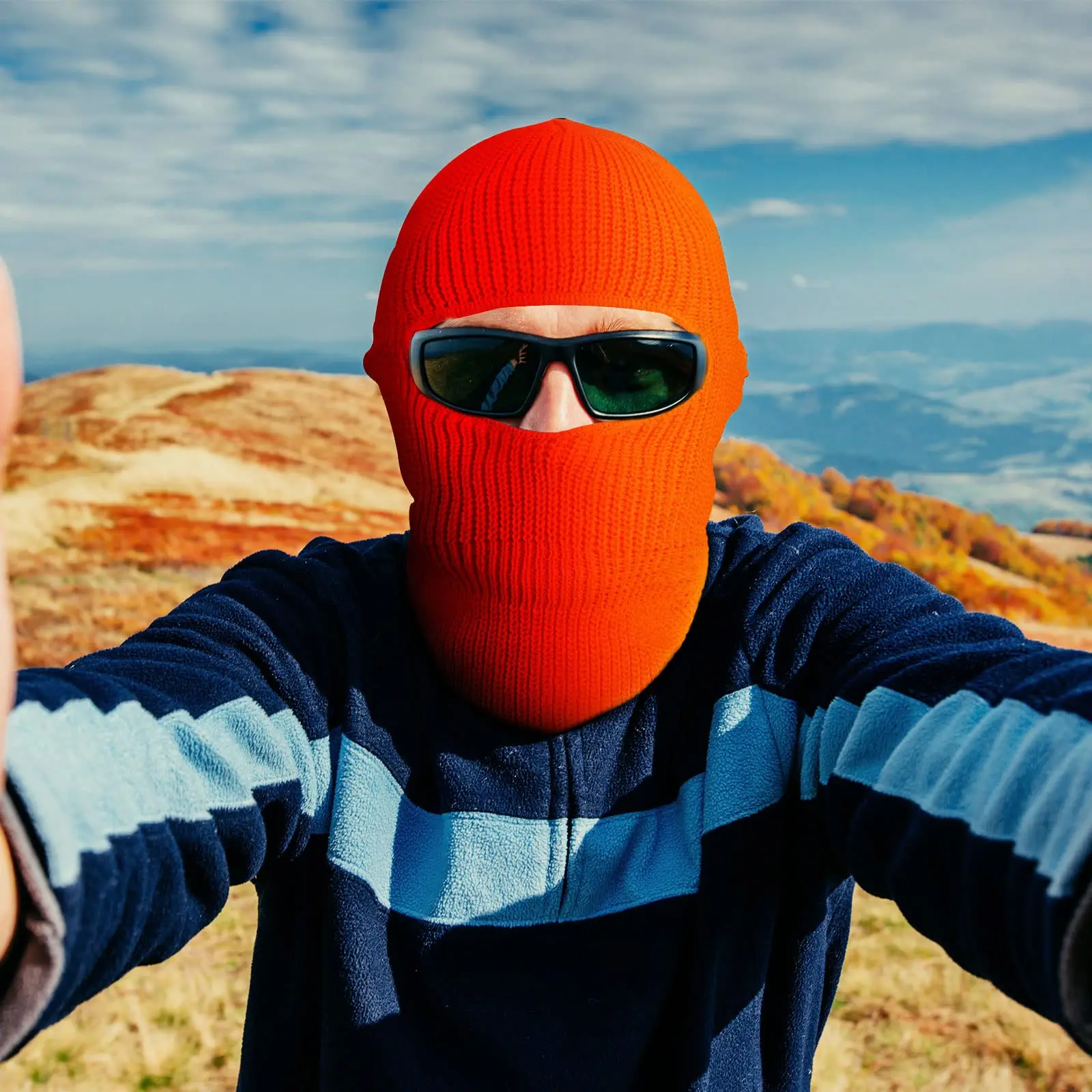 Шапка-бини вязаная однотонная для мужчин и женщин, уличная спортивная Лыжная шапка, Балаклава, зимняя теплая шапка с одним отверстием для всего лица