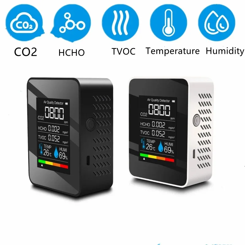 Это качественный детектор качества воздуха, с использованием превосходного модуля электрохимического обнаружения, с высокой точностью, стабильной производительностью, может точно обнаруживать значение углекислого газа. Большой дизайн экрана, вы можете четко видеть данные измерений. Различные цвета отображают различное качество воздуха. Вы можете попробовать.Особенности:Интеллектуальный тестер значений углекислого газа использует полупроводниковый датчик воздуха для контроля температуры и влажности воздуха.Принимает Улучшенный модуль электрохимического обнаружения, с высокой точностью, стабильной производительностью, может точно обнаруживать значение углекислого газа.Сильная способность анти-помех, низкое потребление и длительный срок службы.Продукт не нуждается в калибровке, он может быть протестирован после загрузки, и он может точно обнаруживать углекислый газ.Различные цвета, соответствующие разному качеству воздуха, подходят для офиса, семьи и других случаев.Сотни вентиляционных отверстий на задней части корпуса не только ускоряют конвекцию между воздухом и машиной, тем самым обеспечивая эффективное обнаружение, но и обеспечивают эффект тонкого рассеивания тепла.Широкое применение: сельскохозяйственная посадка, тепличные овощи, производственный склад, обработка материалов, домашний интерьер и т. д.5в1: большой экран отображает мощность, значение CO2, значение TVOC, значение HCHO, температуру и влажность.Примечание:Новая машина должна проветриваться в течение 24 часов, чтобы обеспечить точное измерение, и продукт будет работать нормально.Характеристики:Название: детектор качества воздухаТип: 5in1black, 5in1 whiteБатарея: 1*3,7 V, 2000mAh литиевая батарея Батарея(В комплекте)5 в 1:Обнаружение CO2-диапазон: 400-5000 PPM, + 50 + 5% PPMЧувствительность обнаружения CO2: 1ppmОбнаружение TVOC-диапазон: 0-2,0 мг/м³HCHO Detection-Диапазон: 0-0,6 мА/м³Измерение температуры-диапазон: от-10 до 50 ℃Измерение температуры Точность: ± 1 ℃Измерение влажности-диапазон: 0%-99% RHТочность измерения влажности: ± 2% относительной влажностиТовар Размеры: 90*70*40 мм/3,54*2,76 * 1.57inРазмер посылка: 138*95*47 мм/5,43*3,74*1,85 дюймаУпаковочный лист:1 * детектор качества воздуха1 * кабель1 * Руководство пользователя