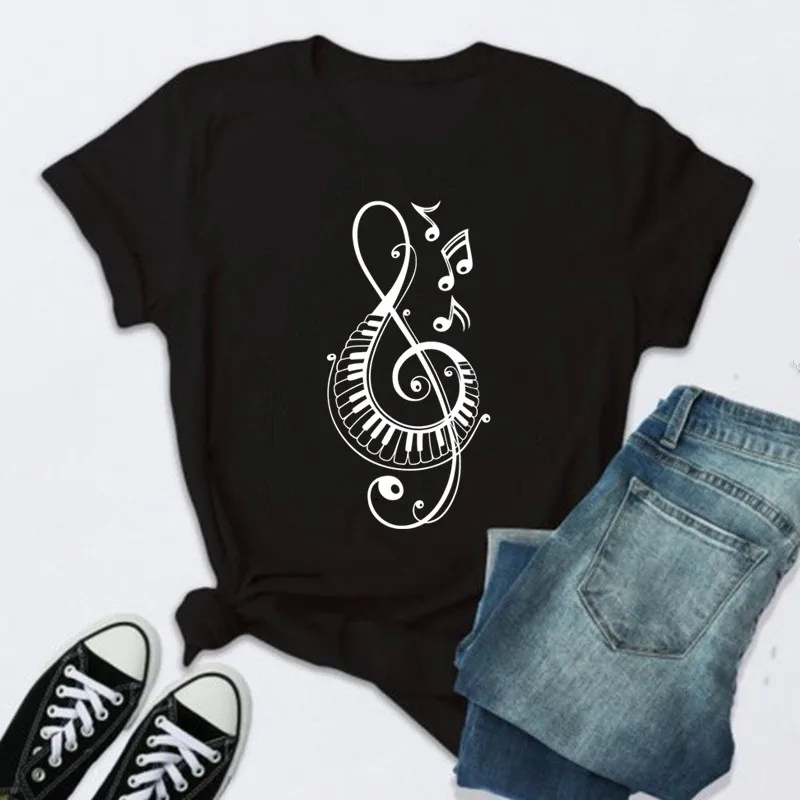 Женская футболка в стиле Харадзюку, топы с принтом музыкальных нот, Новая Черная футболка, женские модные футболки с графическим рисунком, женские топы, футболки, 2022