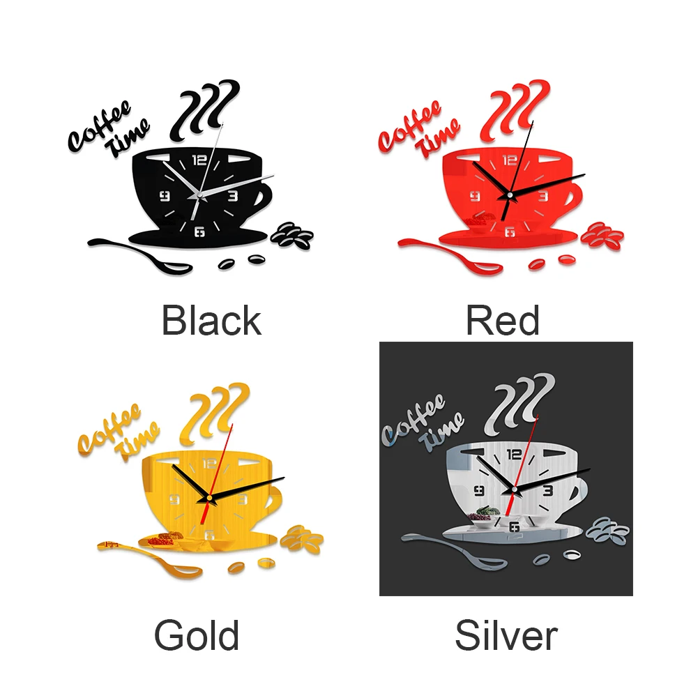 Подарок в форме чашки, современный кухонный домашний декор, на батарейках, бесшумные настенные часы, наклейка, домашний акриловый 3D клей для кофе