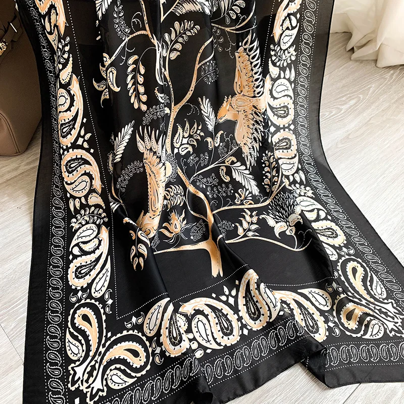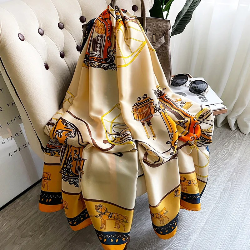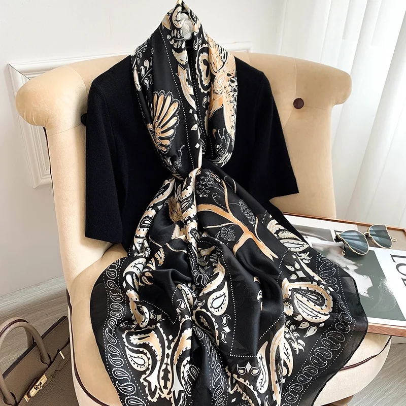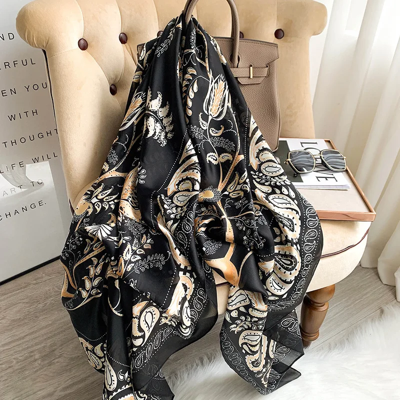 2021 женский Шелковый зимний шарф, роскошный дизайн, женская пляжна...