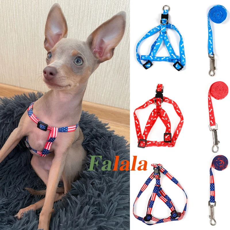 Поводок с принтом костей для собак, летняя модная Регулируемая шлейка для маленьких собак и щенков, аксессуары для прогулок