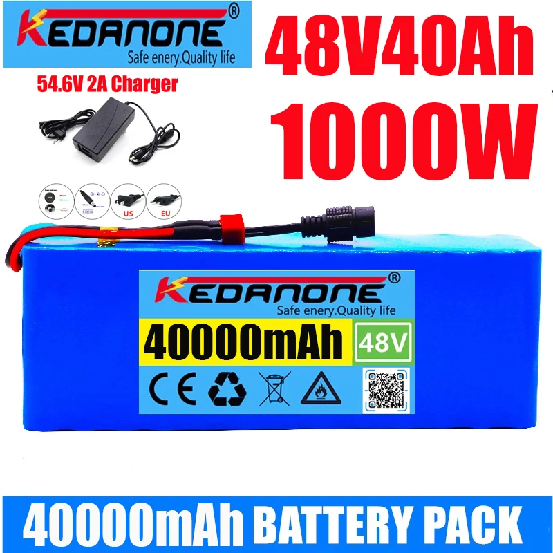 Оригинальный электрический велосипед Скутер 48 в 40000 мАч Li-Ion 40 Ач 1000 Вт 13S3P 18650 литий-ионный аккумулятор 54,6 в зарядное устройство для электровелосипеда с BMS