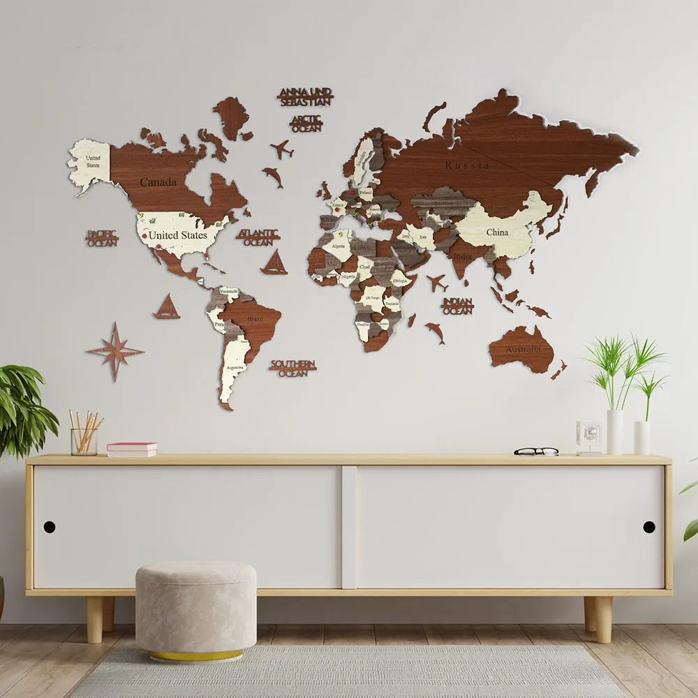 3D деревянная карта мира, многоцветная красочная Настенная картина, декор для комнаты, Терра для стен, искусство, декор для комнаты, декоративное высокое качество