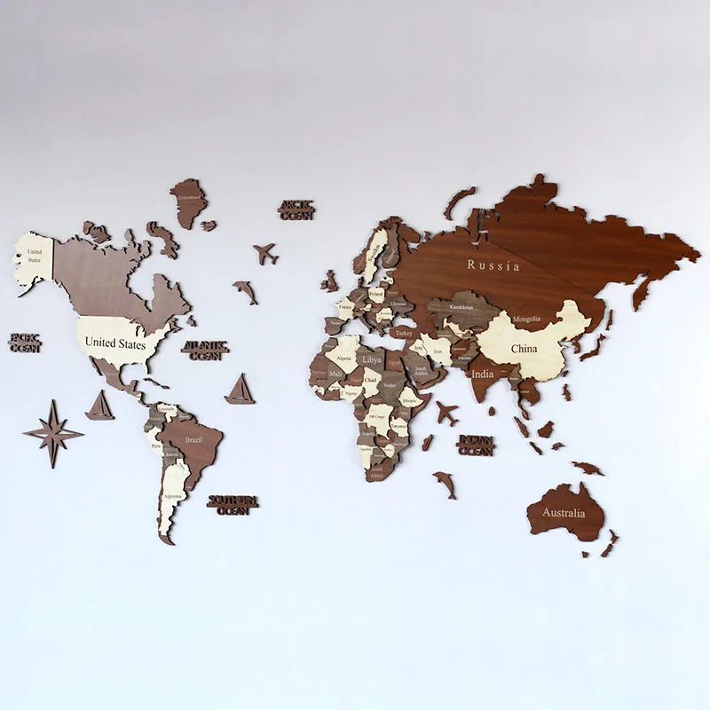 Декоративная 3D Деревянная Карта мира, Туана, Европа, Азия, контине...