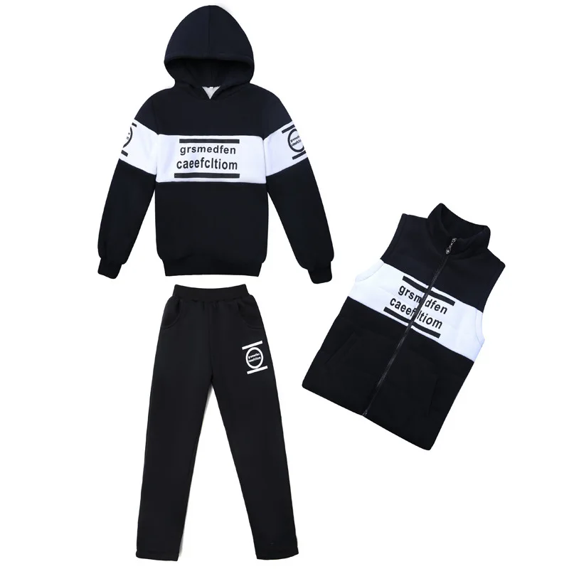 [Xlmodel]-[custom]-[55323Комплект спортивной одежды для девочек, толстовка + штаны + жилет, одежда для девочек, костюм с буквенным принтом для мальчиков и девочек-подростков, детский спортивный костюм