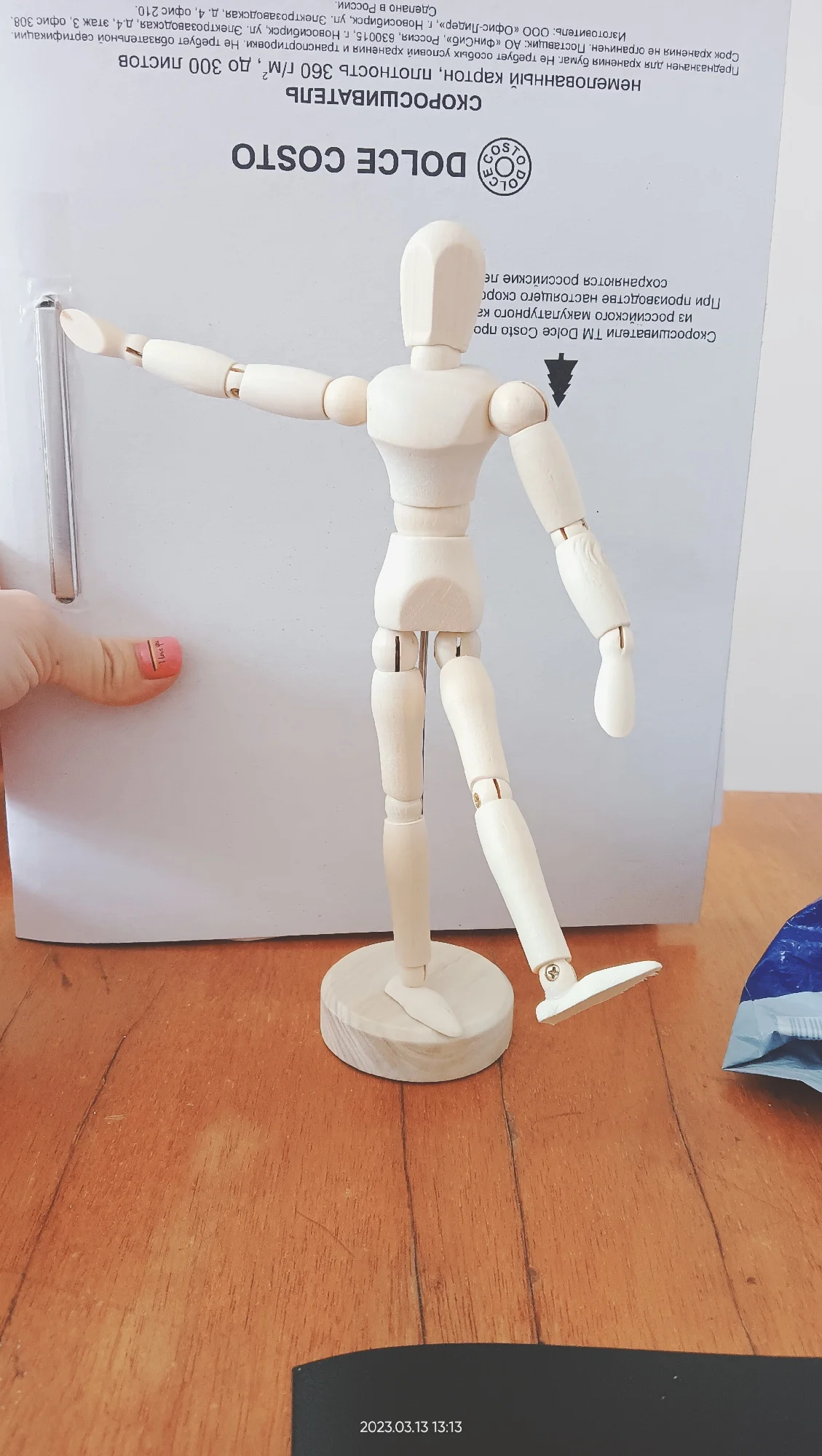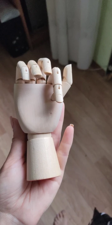 Двигаются многие части. Дерево гладкое, без сучков. Упакован в пупырку, но круглая часть в которую втыкается проволока не доупоковали Товар рекомендую