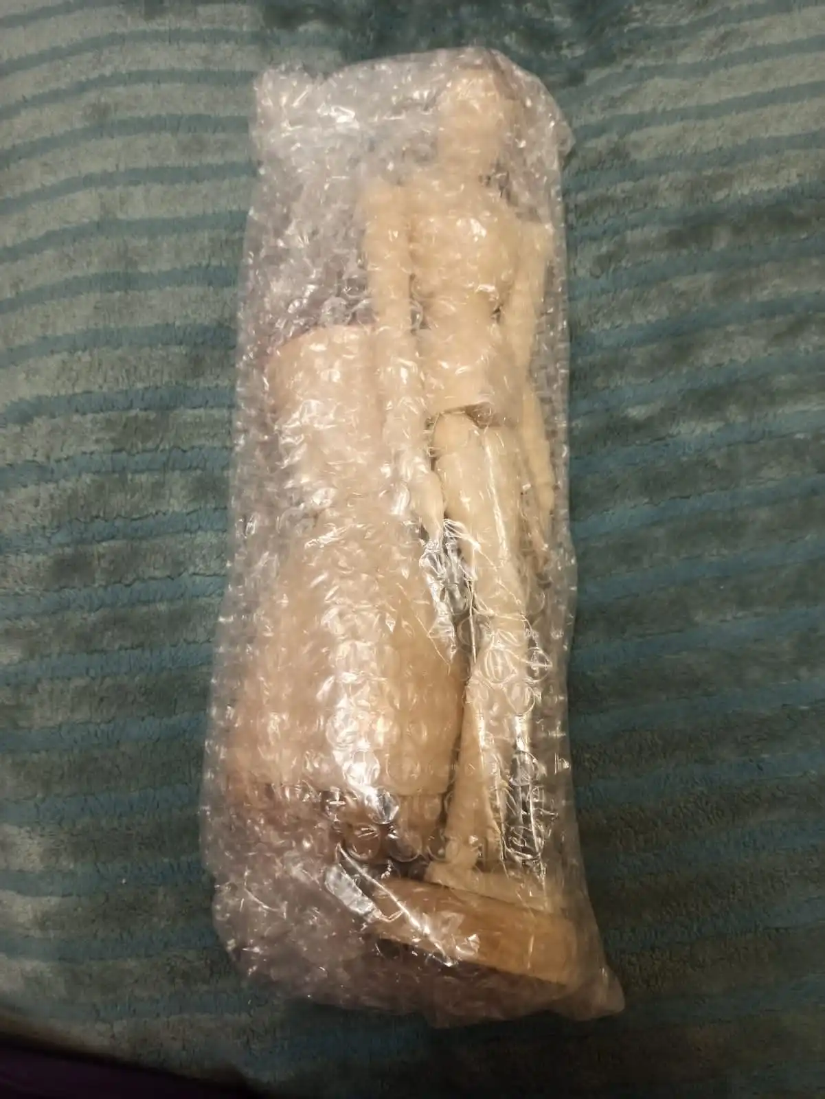 доставка в Москву быстрая. заявлена была на 9 февраля, а пришла 9 января. все отлично, кроме того, что тазобедренные суставы приклеены и не двигаются