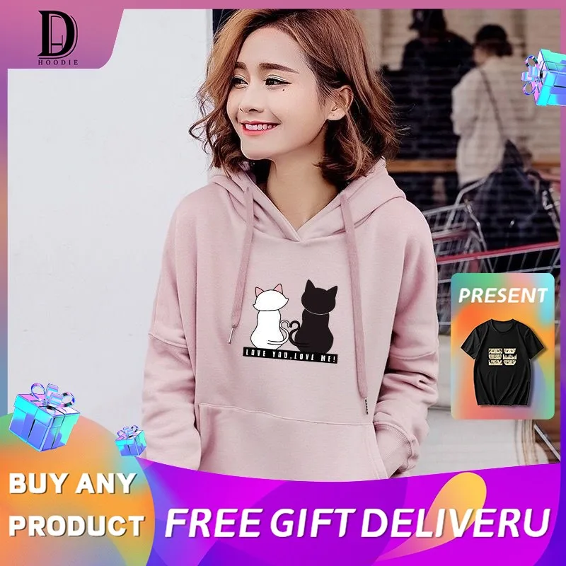 Зимний пуловер, свитшоты, Женская кошачья Милая Женская Толстовка С...