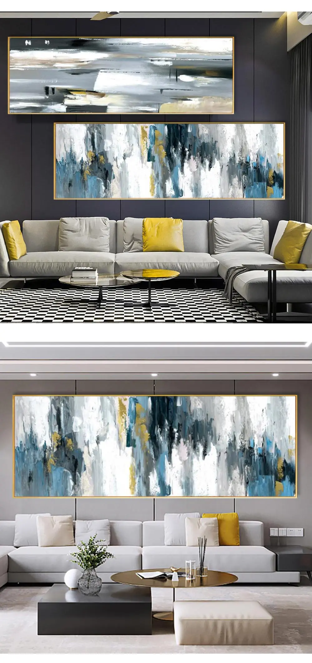 Современное настенное искусство абстрактные картины желто-серое и б...
