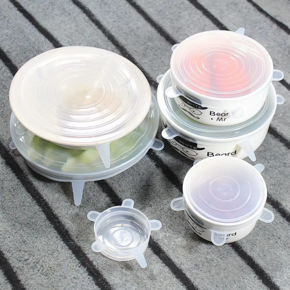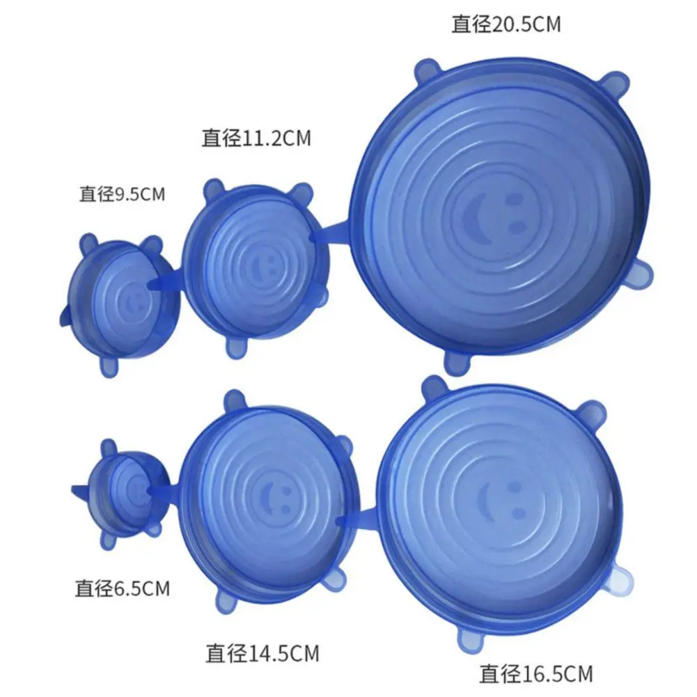 Многоразовая силиконовая крышка 6 шт., сохраняющая свежесть силиконовая крышка для пищевых банок, адаптируемая эластичная чашка, крышка для посуды, кухонные аксессуары