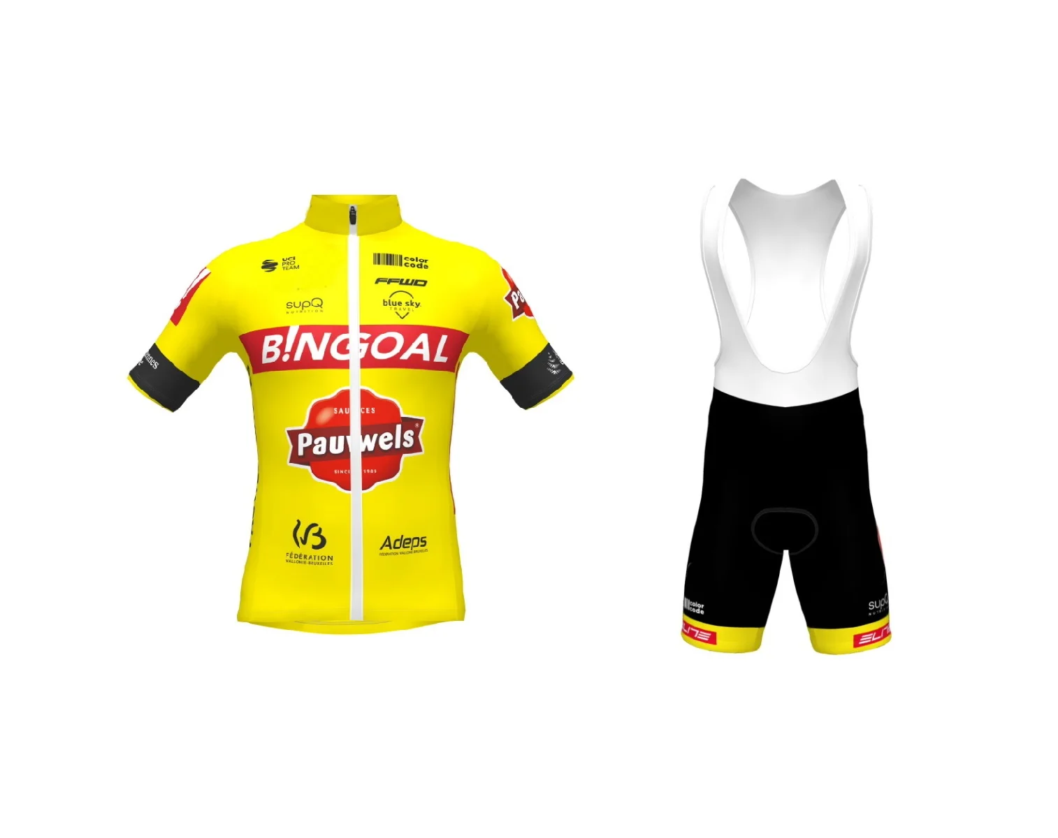 POWER BAND 2022 2021 BINGOAL TEAM флуоресцентная желтая велосипедная майка с коротким рукавом летняя велосипедная одежда ROPA CICLISMO + шорты-комбинезон