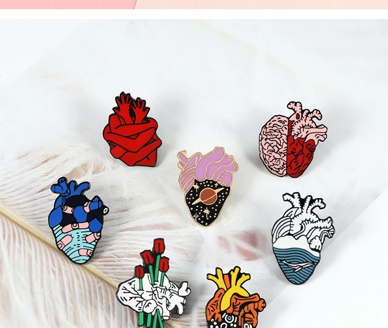 Человеческого сердца эмали штырь Вселенной Броши с розами Творчески...