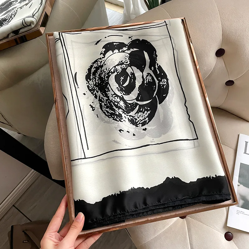 2022 весеннее x 90 см Большое пляжное полотенце зимние пылезащитные женские модные атласные шарфы с цветами Популярные солнцезащитные шарфы с принтом
